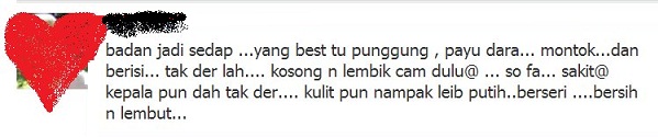 - Bole sapu di mana2 anggota badan seperti lengan, bahu, tengkuk atau tumit kaki bg kulit mengelupas. berkesan utk melicinkan kulit, menghapuskan jerawat dan melembutkan kulit.se eloknya sapu sebelum mandi. bila dh kering (lbh kurang 20 minit), boleh mandi.